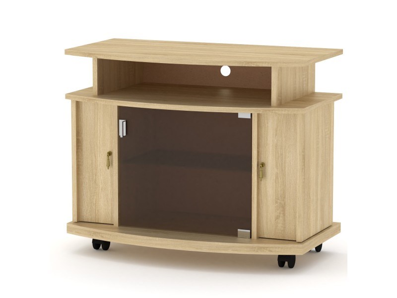 Gornja površina komode pruža dovoljno prostora za televizor, čak i onaj velikih dimenzija, dok je ispod smešteno odeljeno mesto za satelitski prijemnik ili druge uređaje. Diskretni otvor na zadnjoj strani omogućava lakše povezivanje kablova, čime se izbegava nered.