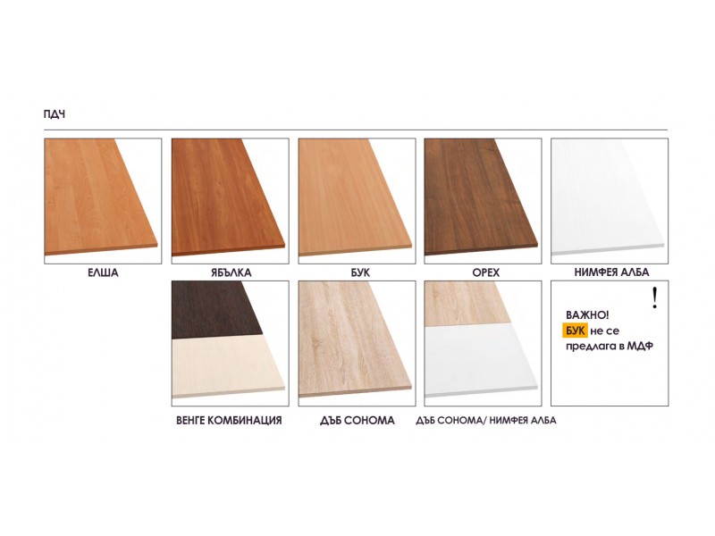 TV komoda Sekcija ”Milana” se izrađuje u nekoliko kombinacija boja, svaka od kojih je izuzetno efektna i potpuno usklađena sa savremenim konceptima enterijera. Model je dostupan u varijantama poput svetlog hrasta i bež, kao i kombinaciji wenge i zlatnog hrasta. Takođe, može se nabaviti u jednobojnim nijansama poput oraha, trešnje i bukve.
