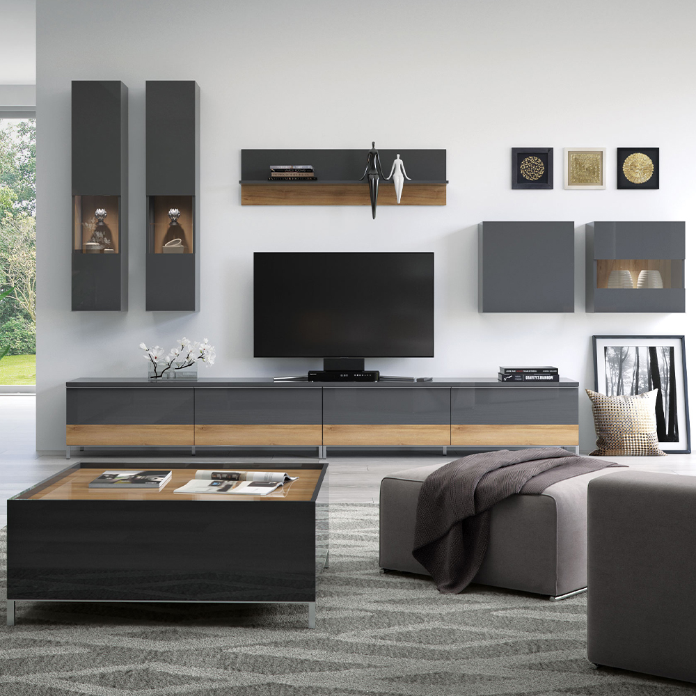 - vidljivi delovi elementa lakirani su UV lakom u visokom sjaju u artaktivnoj Antracit boji sa aplikacijama u drvodekoru Pacifik orah