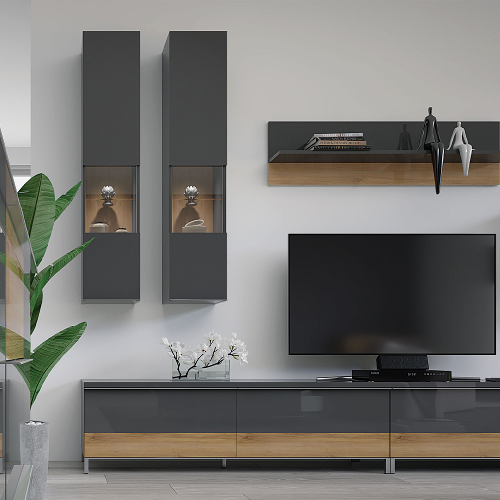 Viseća komoda za dnevnu sobu iz kolekcije ONYX, sa jednim staklenim krilom, kompletno lakirana UV lakom.