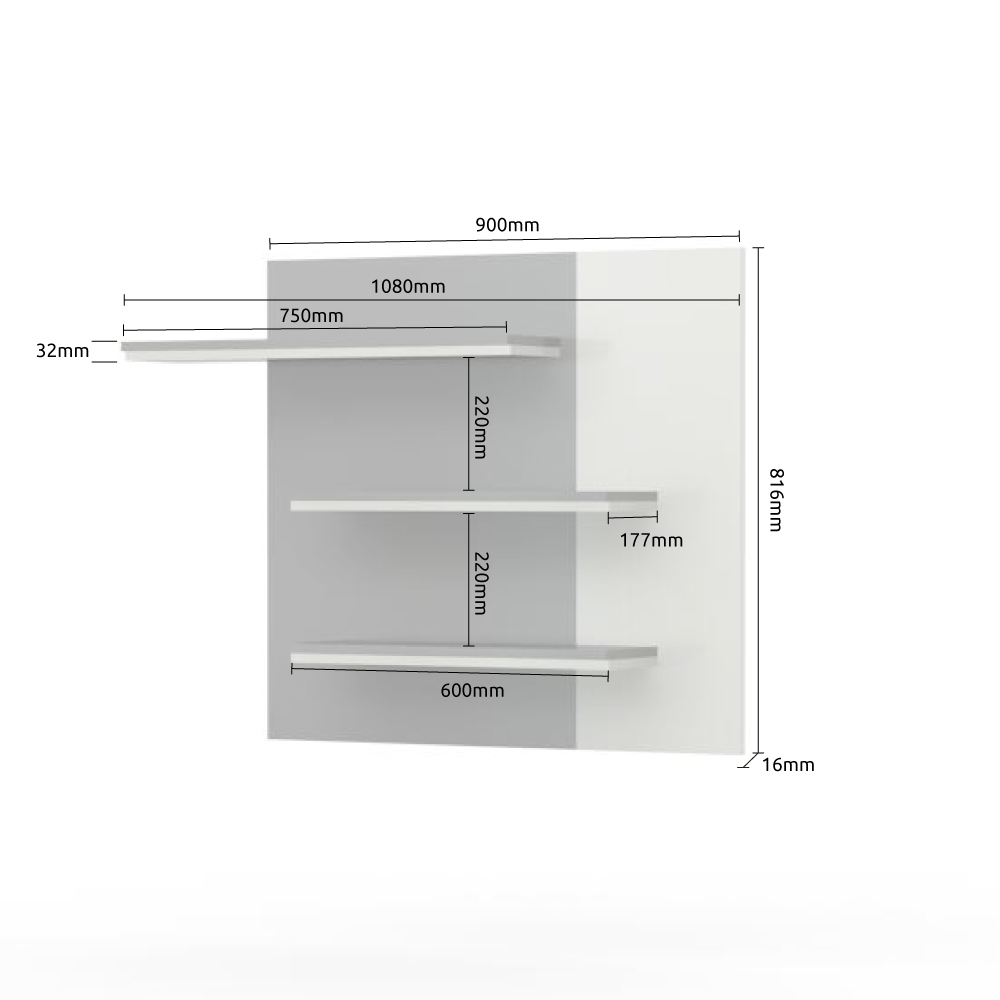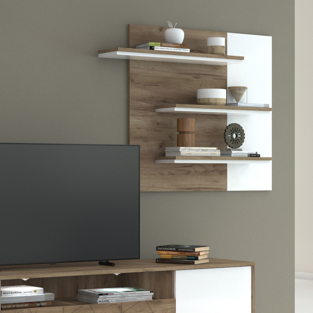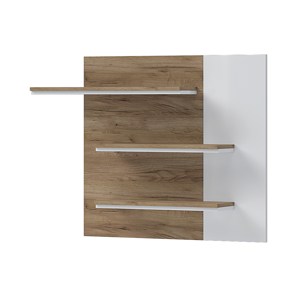 Atraktivna viseća polica za dnevnu sobu, iz kolekcije STELA, sa tri faha, obezbeđuje dodatni prostor za odlaganje knjiga i dekorativnih predmeta.