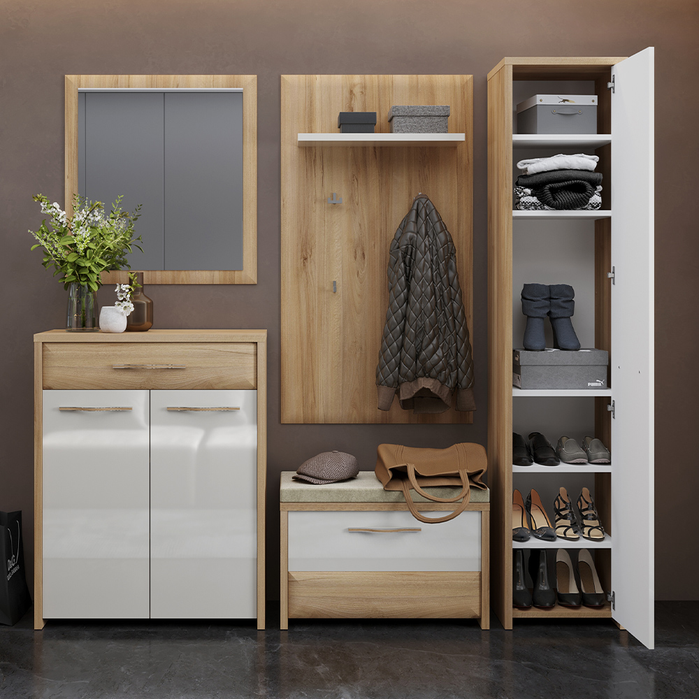 Vitrina za predsoblje iz kolekcije GALA sa jednim krilom, modernog dizajna i jake geometrijske forme.