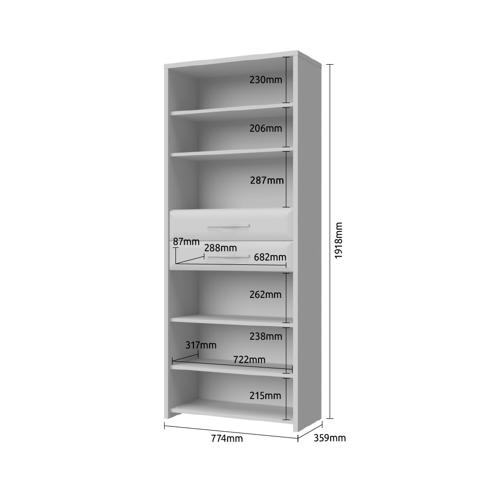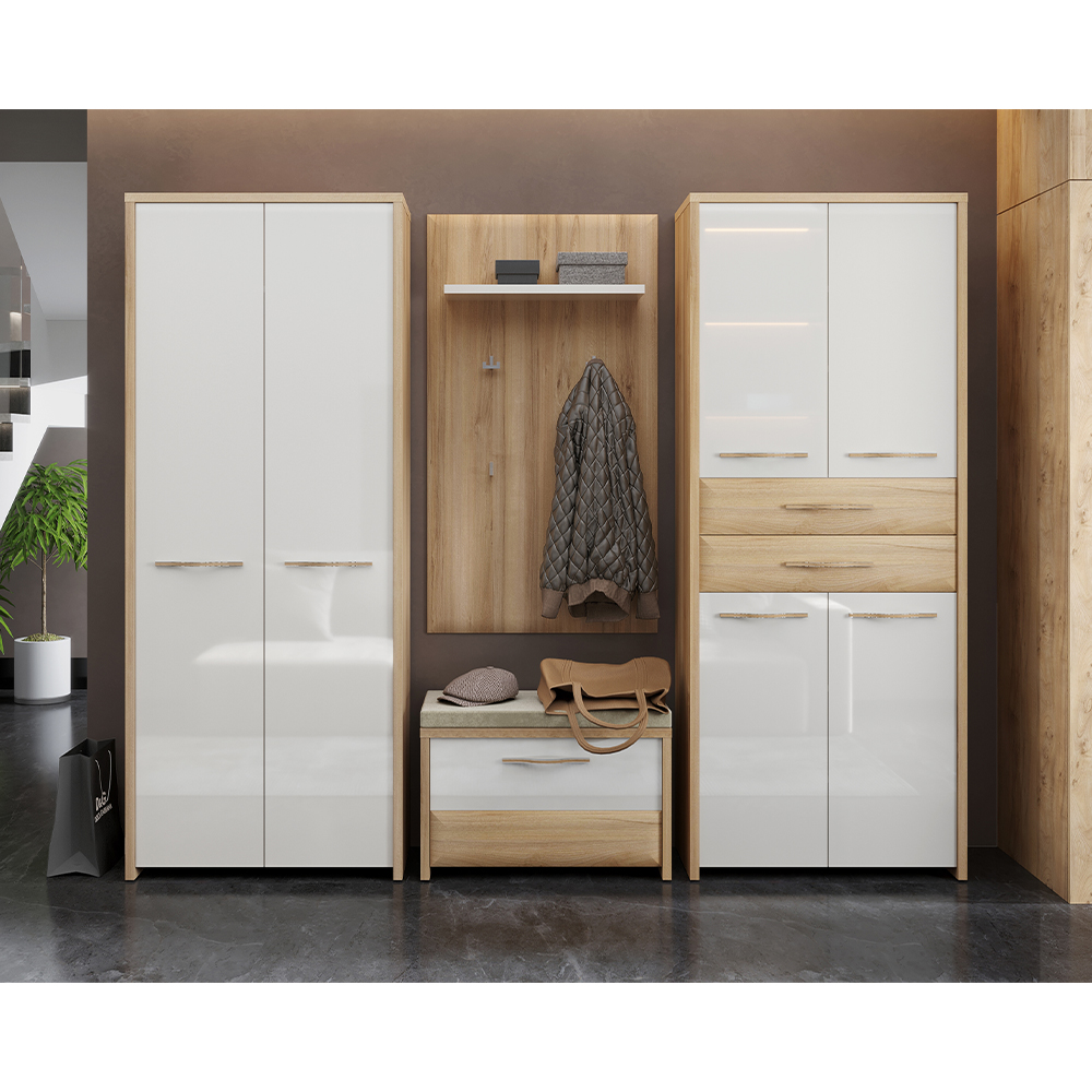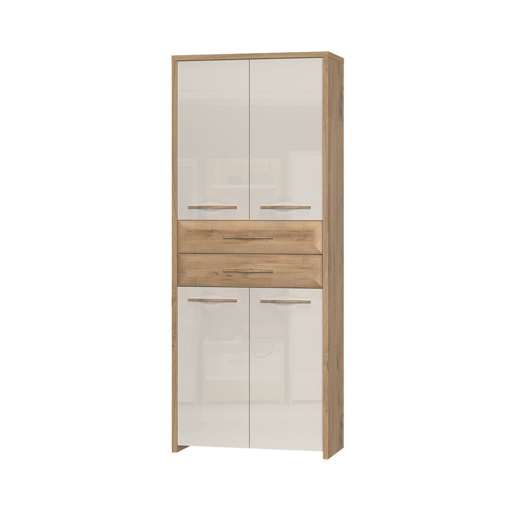 Vitrina za predsoblje iz kolekcije GALA sa četiri krila i dve fioke, modernog dizajna i jake geometrijske forme.