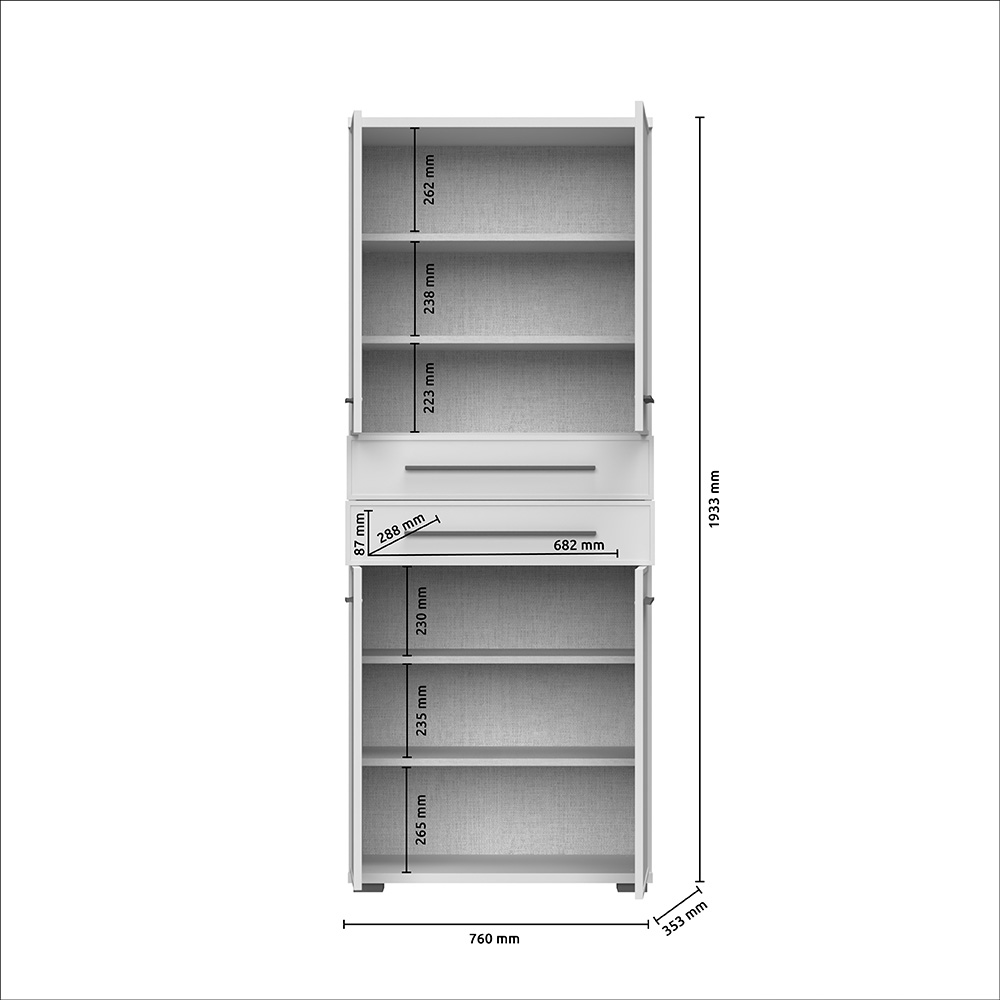 Vitrina za predsoblje sa četiri asimetrična krila i dve fioke iz kolekcije OPERA.