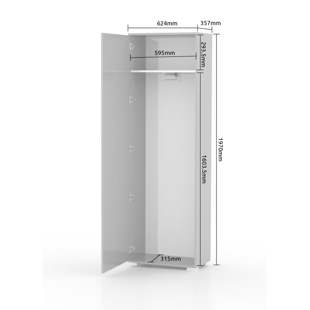 - ovaj element nameštaja poseduje jedan fah u drvo-dekuru Tobacco hrast, garderobnu šipku na izvlačenje, kao i podesive nožice za nivelisanje na neravnim površinama