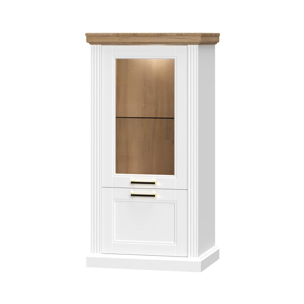Luksuzna vitrina iz kolekcije TARA sa jednim staklenim i jednim punim krilom.