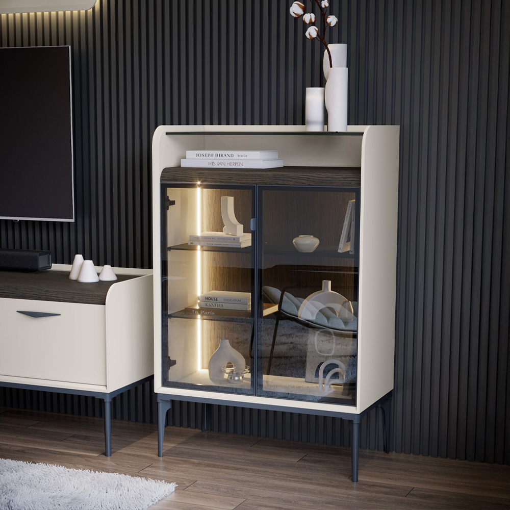 Vitrina za dnevnu sobu iz kolekcije SOFFY sa dva krila sa aluminijumskim ramom.